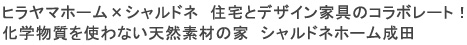 木材業から創業し115年、木を知り尽くした、”住まい作り企業ヒラヤマホーム”と 全国38店舗のネットワークを持つ、女性目線からの使いやすさと、きめ細やかなデザインが大人気の ”デザイン家具企業シャルドネ”のコラボレーションから生まれる、 化学物質を使わない天然木の安心さと、家と家具の一体化したデザインの美しさ・使いやすさ、 地元施工業者だからできる納得の価格でご提案する、シャルドネホーム成田、おかげ様で大好評です!
